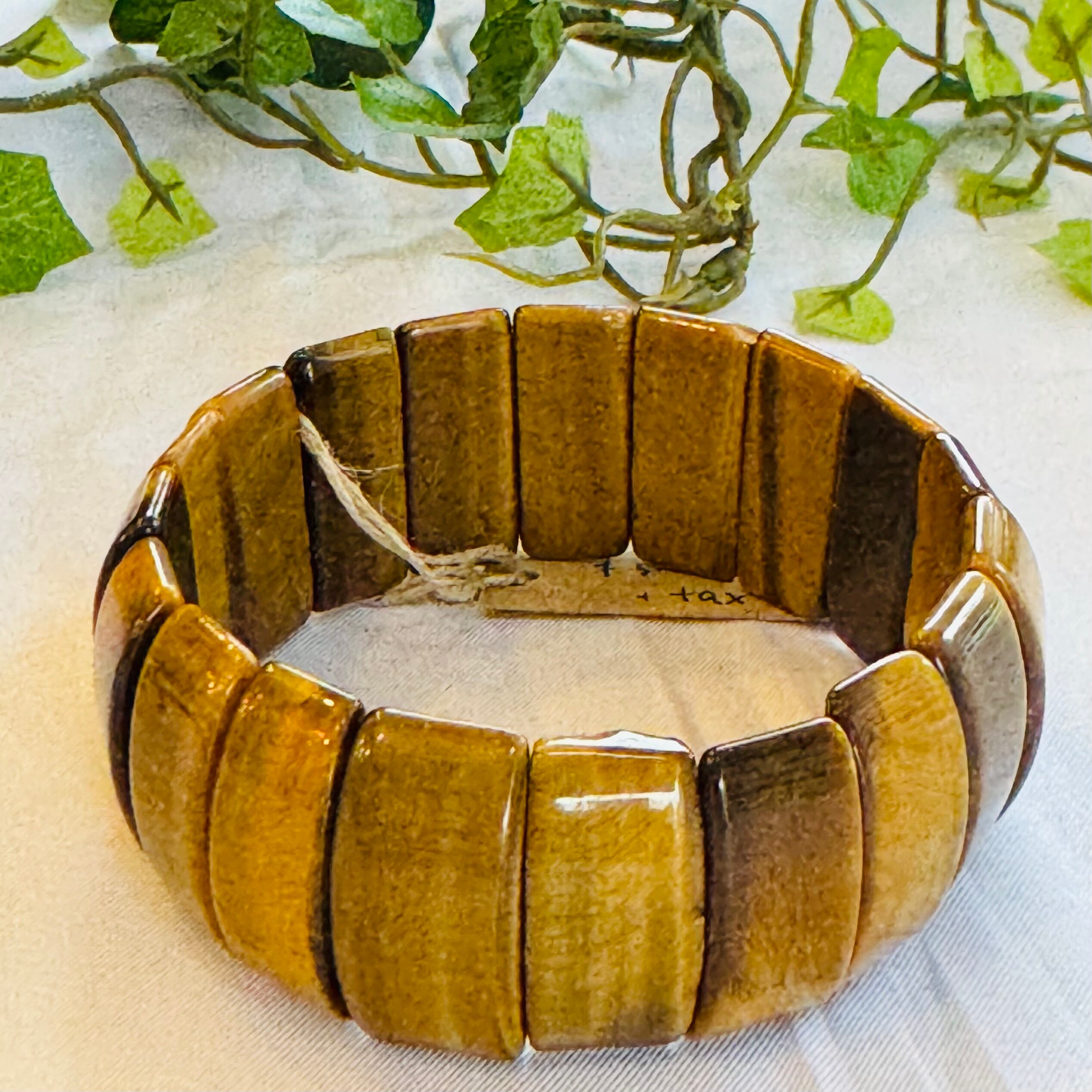 タイガーアイの美しい色合いのバングルです。独特の黄金色と深いブラウンのストライプが特徴で、シンプルながらも存在感を放ちます。どんなスタイルにもマッチし、フォーマルな場面からカジュアルな日常まで幅広く活躍するアイテムです。