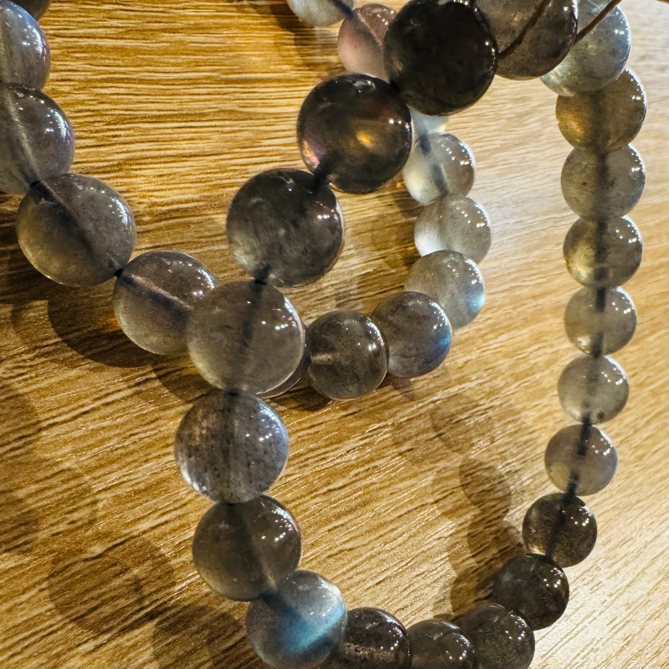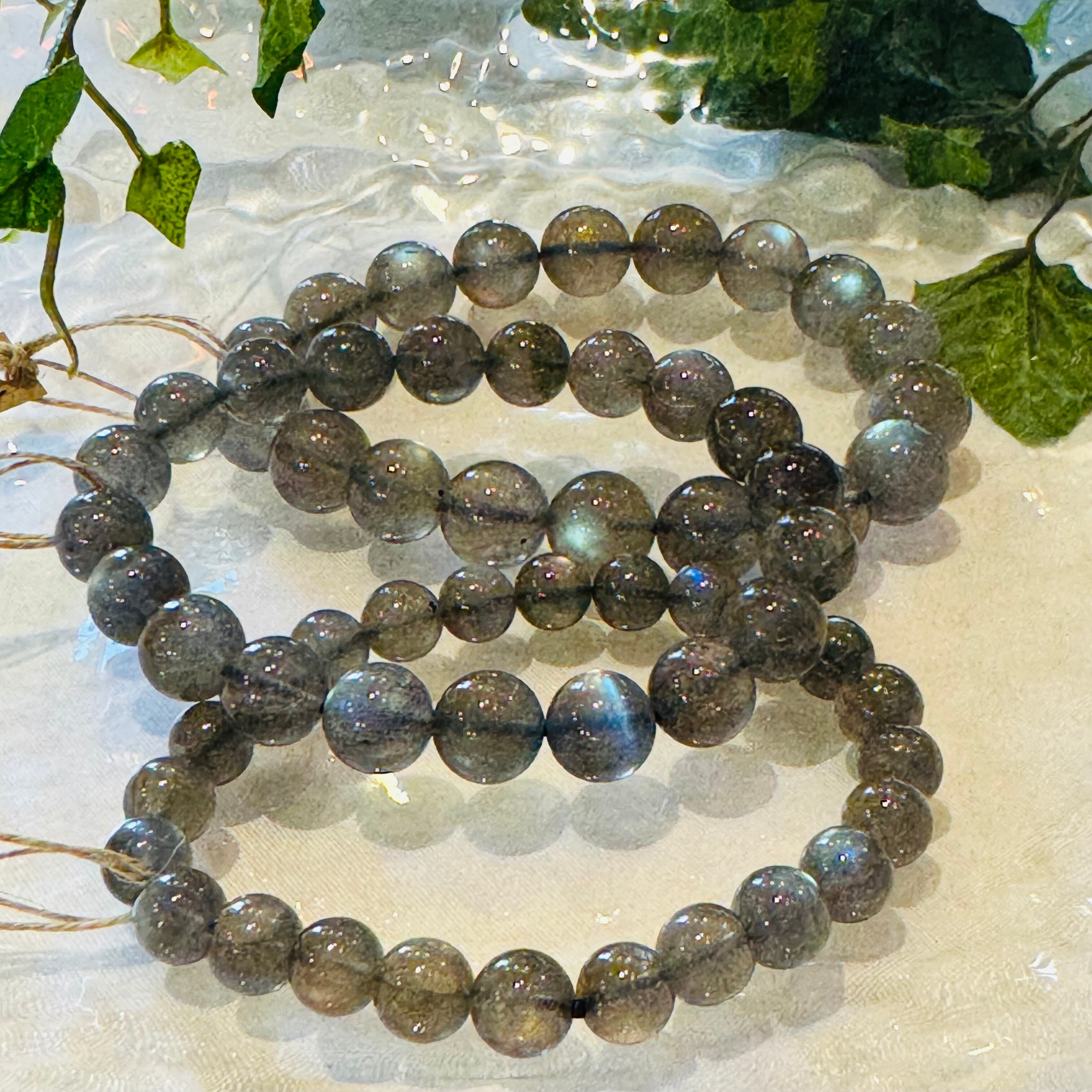 神秘的な輝きを持つラブラドライトの美しいブレスレットです。ブラックからグレー系の落ち着きに加え、角度や光の加減でゴールドやグリーン、ブルーの煌めきが出現しとても神秘的な色合いの変化が楽しめます。潜在能力や才能を引き出し、持ち主の直感力と洞察力を高める力を秘めています。人生の重要な転機や変化の時に、あなたをしっかりとサポートしてくれることでしょう!