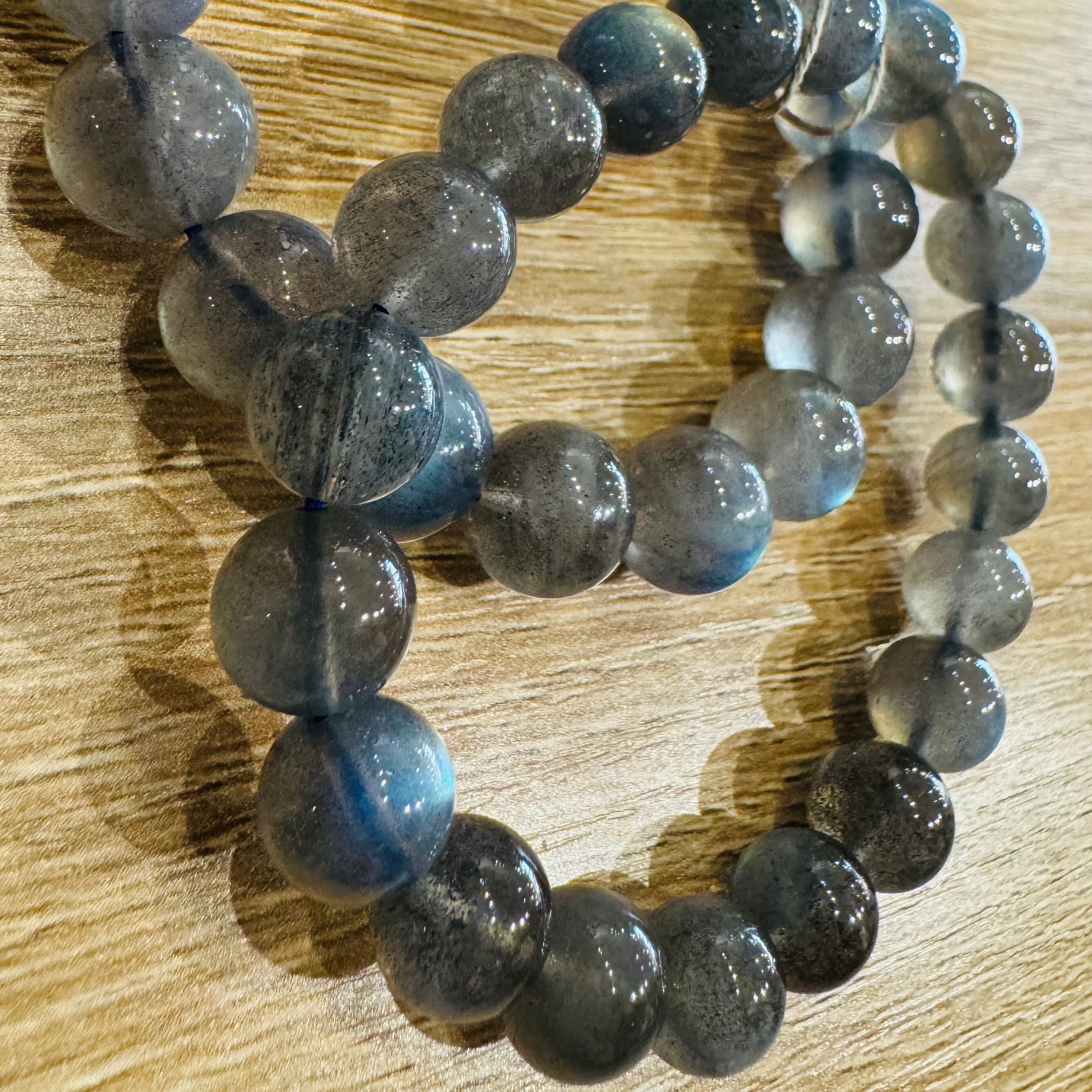 このブレスレットは、持つ人に静かな力をもたらし、人生の新たなチャレンジへの扉を開く能力があります。特にラブラドライトは、「月と太陽」の象徴として、ダイナミックなエネルギーを提供し、重要な局面での判断力をサポートします。特別な日や大切な瞬間に身に着けることで、あなたの直感が冴え渡り、自信を持って前進する力を与えてくれるでしょう。
