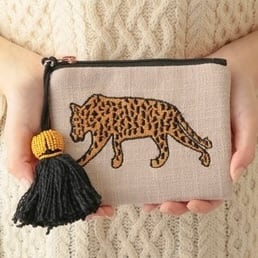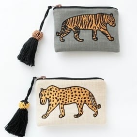 インパクトのあるタイガーとレオパードの刺繍が施された『アニマル刺繍ポーチ』