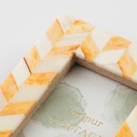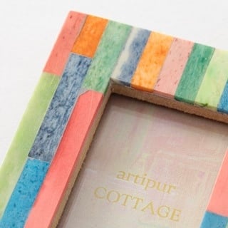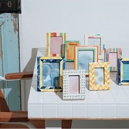 廃棄されてしまうラクダの骨を使用し、ハンドペイントで色付けしたカラフルなミニフォトフレームです。